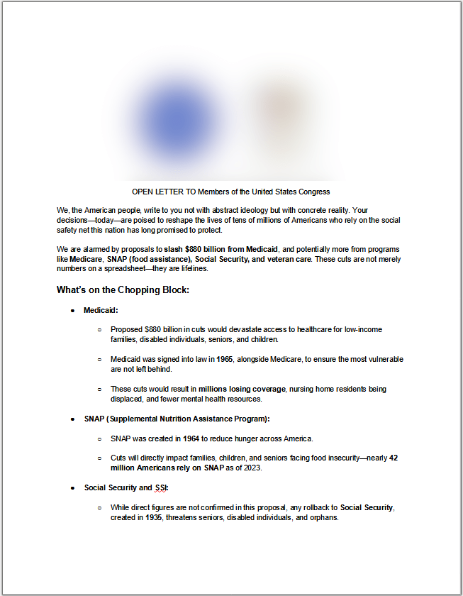 OPEN LETTERS TO CONGRESS